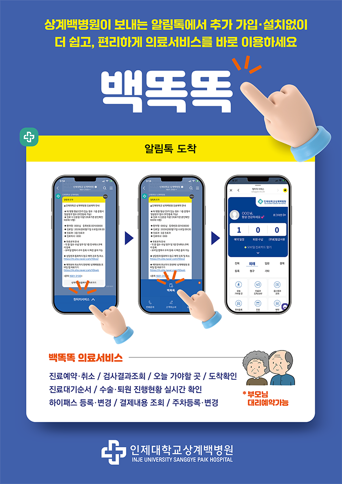 상계백병원, 원터치 알림톡 서비스 ‘백똑똑’ 도입 안내