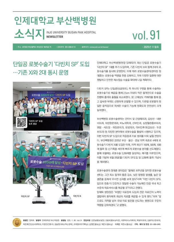 “사람을 위한 기술, 10년의 여정” 부산백병원 로봇수술센터 10주년 심포지엄 개최