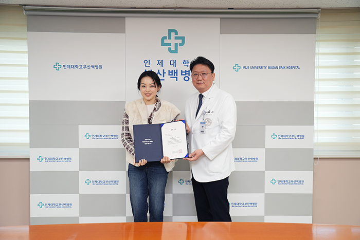 인제대학교 부산백병원(원장 양재욱)은 지난 12월 30일(화), 해운대 소재 이태리 소품 수입업체인 ‘뿔체’로부터 경제적 어려움을 겪는 환자들을 위한 기부금 900만 원을 전달받았다.