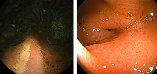 [사진1] 캡슐내시경에서 관찰된 종주성 궤양(왼쪽)과 이중 풍선 소장내시경에서 확인된 협착 소견(오른쪽)