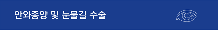 ● 눈물길 수술팀 : 최신 눈물길 미세내시경을 활용하여 비침습적이고 정확한 눈물길 질환 치료를 제공하며, 환자 개개인에 최적화 된 맞춤형 진료로 눈 건강과 삶의 질 향상에 최선을 다하고 있습니다.