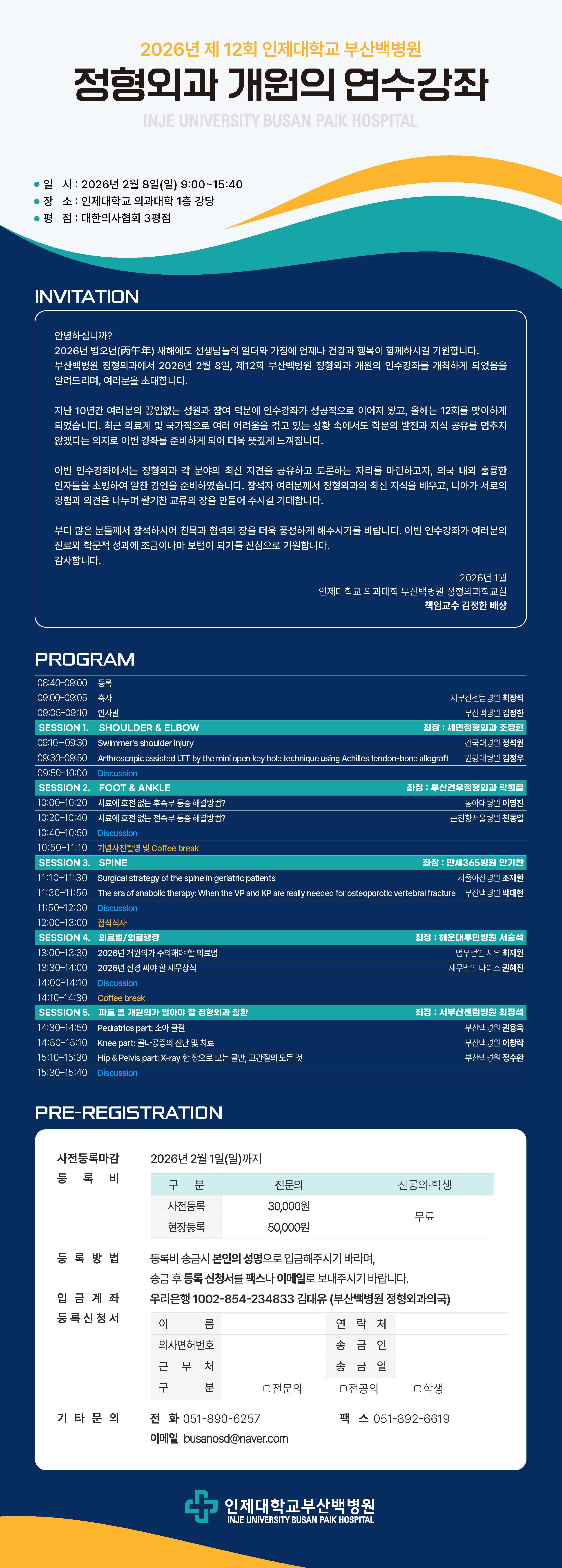 2026 제12회 부산백병원 정형외과 개원의 연수강좌
