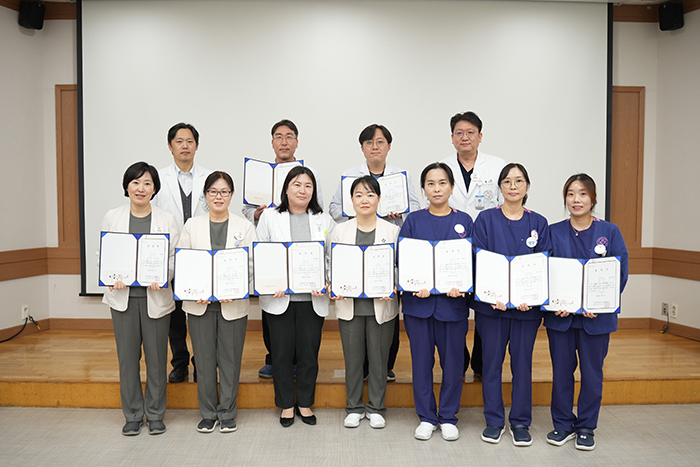 이번 포상은 서비스혁신센터(센터장 김정한)에서 2025년 한 해 동안 실시한 입원 및 외래 환자경험 자체조사 결과를 반영하여 교원, 간호국(병동, 외래)을 각각 선정했다.
