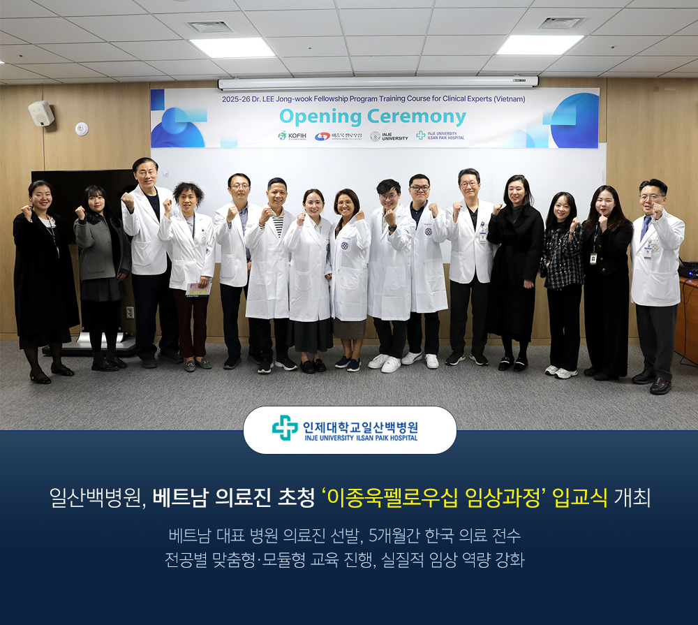 인제대학교 일산백병원(원장 최원주)은 11월 14일 병원 세미나실에서 『2025-26년도 이종욱펠로우십 프로그램 임상과정(베트남) 1차년도』 입교식을 개최하고 본격적인 연수교육에 돌입했다.