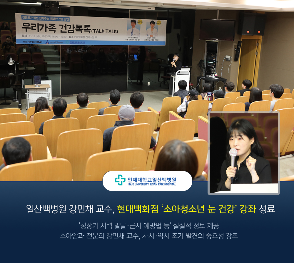 인제대학교 일산백병원 소아안과 전문의인 강민채 교수가 11월 27일(목) 현대백화점 킨텍스점 문화센터에서 ‘소아청소년 눈 건강’ 건강강좌가 성황리에 개최했다.