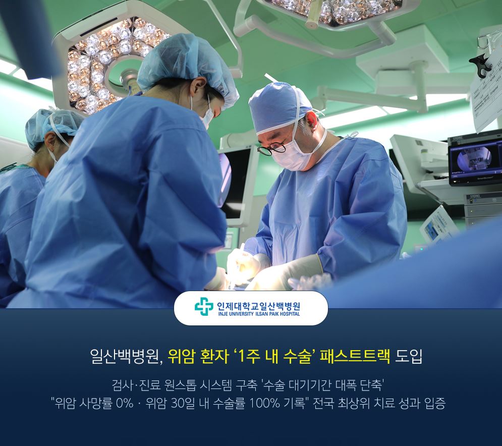 인제대학교 일산백병원(원장 최원주) 위암센터가 위암 확진 후 1주일 이내 수술을 목표로 하는 ‘위암 수술 패스트 트랙(1 Week Fast Track)’ 시스템을 도입했다.