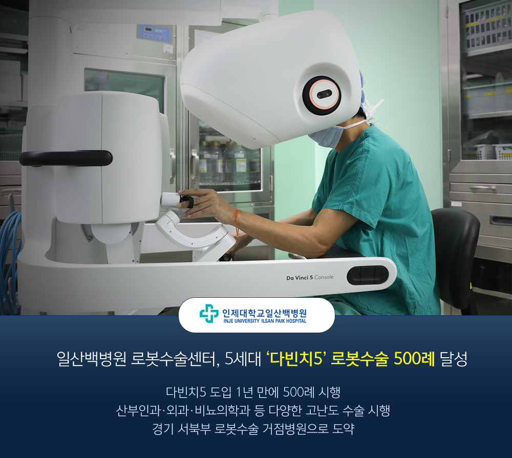 인제대학교 일산백병원(원장 최원주) 로봇수술센터가 5세대 로봇수술기 ‘다빈치5(Da Vinci 5)’를 이용한 로봇수술 500례를 달성했다.