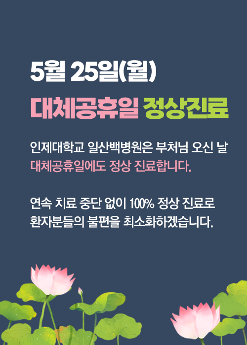 [공지] 일산백병원 5월 25일(대체공휴일, 부처님 오신 날) 정상진료 안내