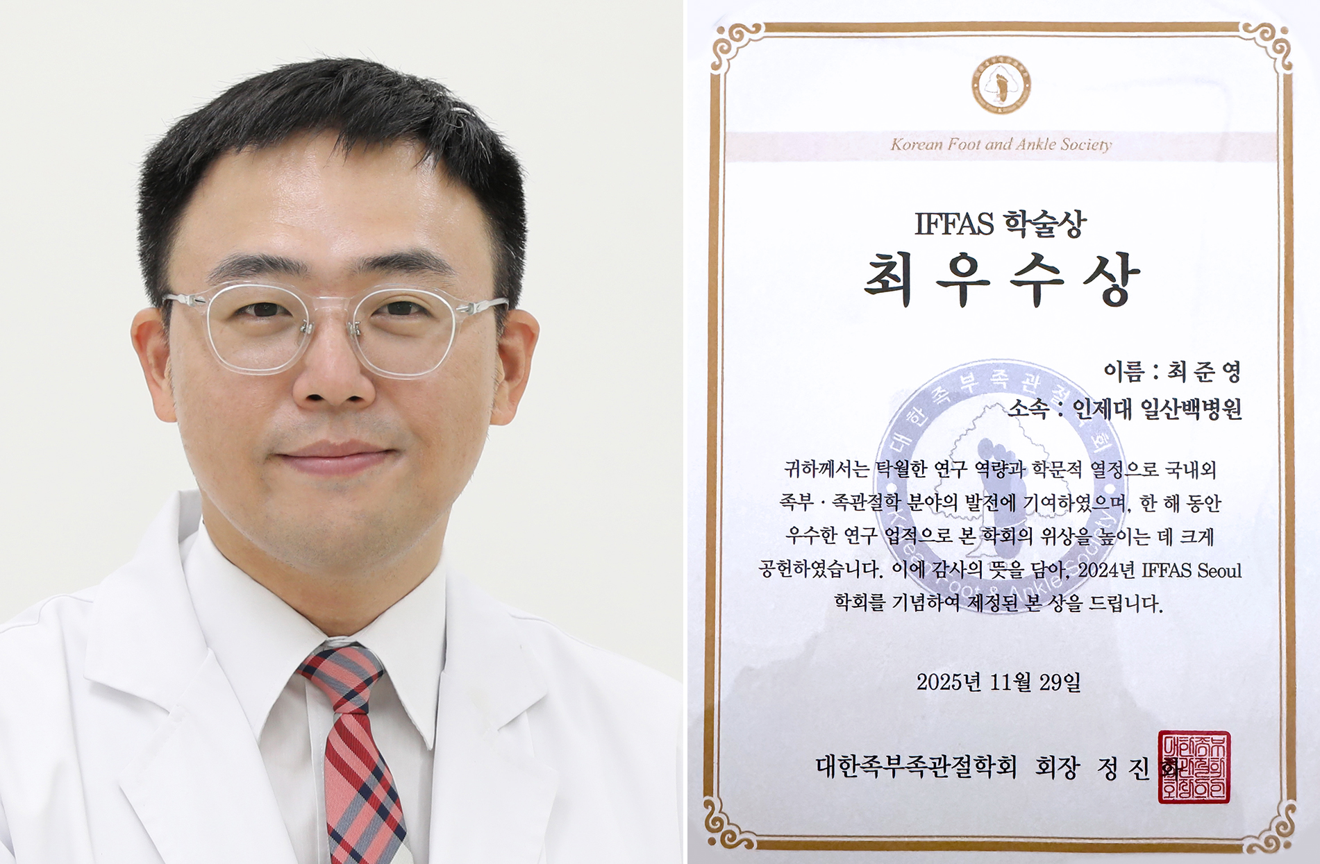 2025년 대한족부족관절학회 IFFAS 2024 기념학술상 최우수상 수상
