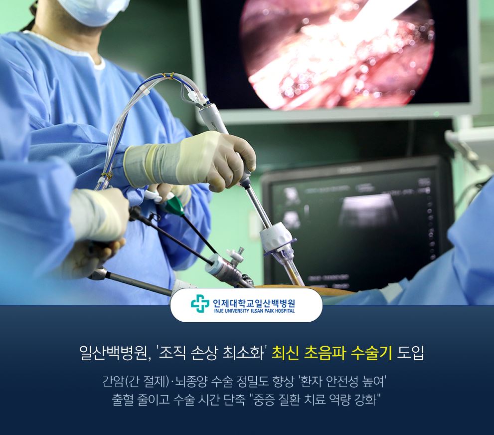 인제대학교 일산백병원(원장 최원주)이 간암과 뇌종양 등 고난도 수술의 안전성과 정밀도를 높이기 위해 최신 초음파 수술기 ‘큐사 클래리티 시스템(CUSA Clarity System)’을 도입했다.