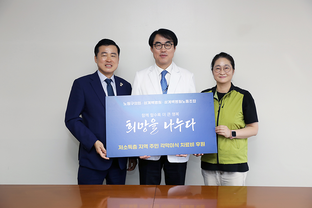 배병노 상계백병원 원장은 “병원과 노동조합의 따뜻한 마음이 노원구의회의 협력으로 더 큰 의미를 얻게 됐다” 며 “앞으로도 지역사회와 함께하는 사람 중심의 공공의료 가치를 실천해 나가겠다”고 전했다.