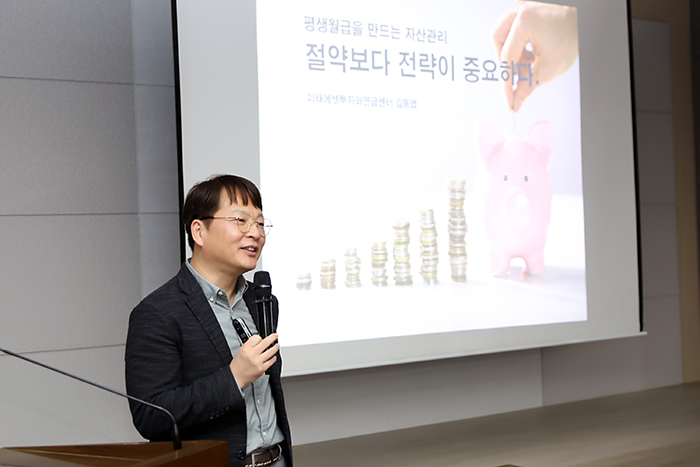 강의는 다수의 방송과 강연에서 쉽고 현실적인 자산관리 전략을 제시해온 금융전문가 김동엽 상무(미래에셋 투자연금센터)가 연사로 초청되어 진행했다. 김 상무는 안정적인 노후 준비와 현명한 투자 습관 등 실생활에 바로 적용할 수 있는 재테크 노하우를 전하며 교직원들의 높은 호응을 얻었다.
