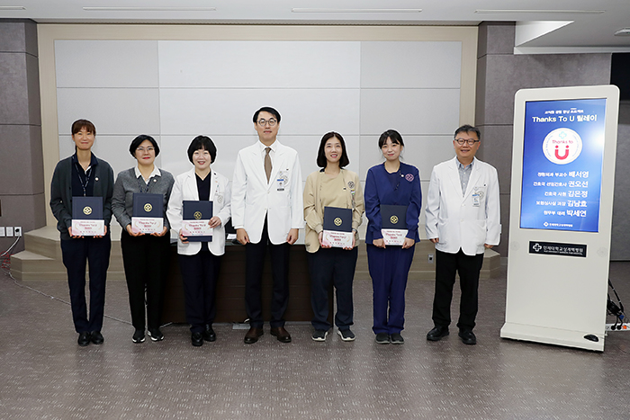 인제대학교 상계백병원(원장 배병노)은 11월 25일(화) 본관 17층 강당에서 2025년 마지막 ‘Thanks To U 릴레이’ 시상식을 열었다. 직원 경험 향상을 위해 추진 중인 이 프로젝트는 동료가 직접 추천한 ‘고마운 직원’을 다음 수상자로 연결하는 방식으로 진행된다.